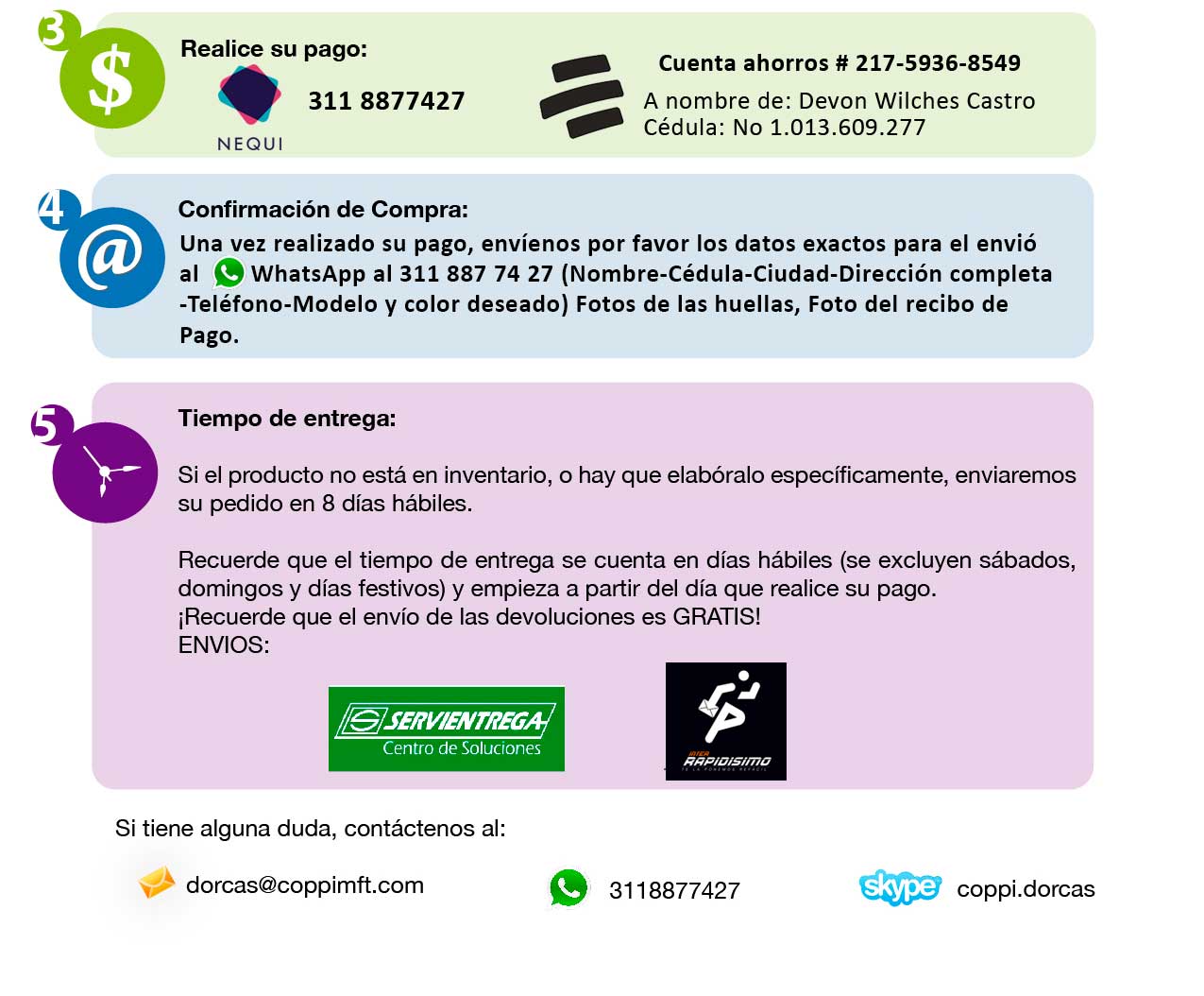 Si desea realizar una compra siga nuestras instrucciones y si tiene alguna duda contáctenos al celular o WhatsApp 3118877427. Será un placer poder atenderle y ayudar a mejorar su calidad de vida.